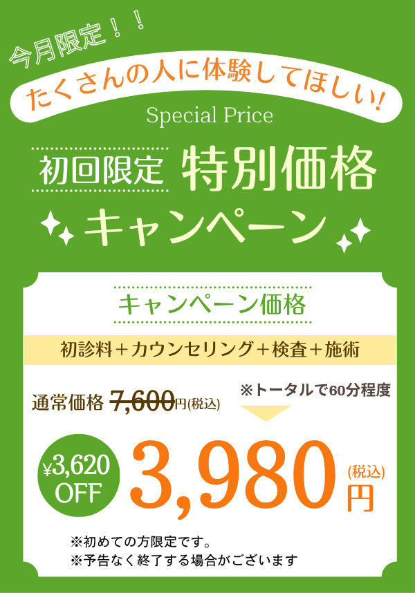 ※初診料として別途1,100円(税込)を頂戴いたします。